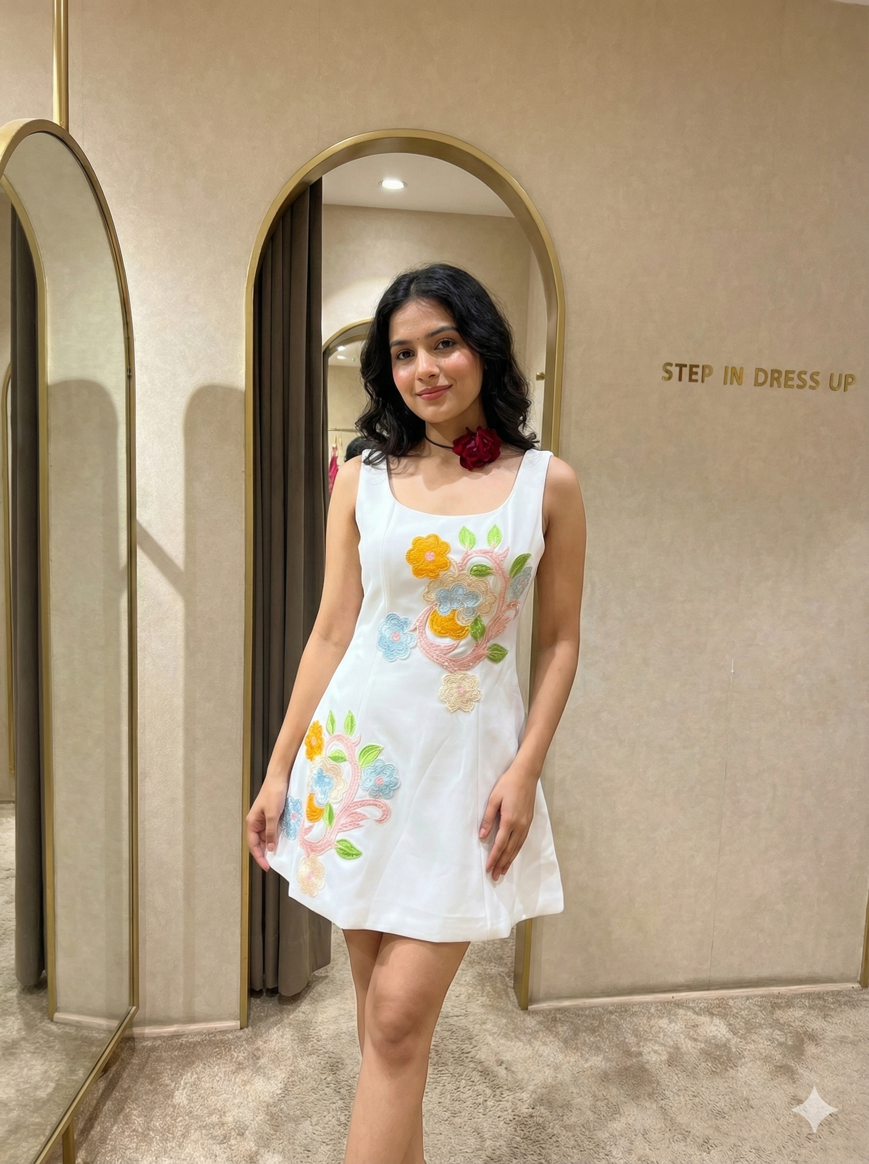 Elevate your wardrobe with this vibrant floral dress, a versatile piece that seamlessly transitions from casual daytime wear to evening occasions. The intricate floral pattern in...