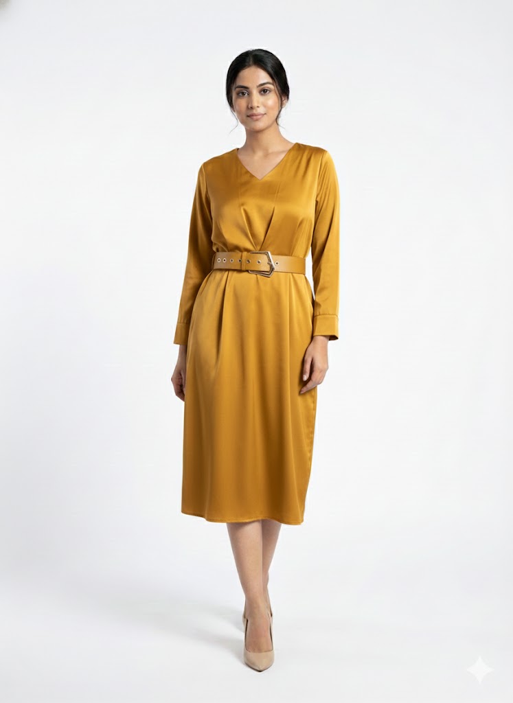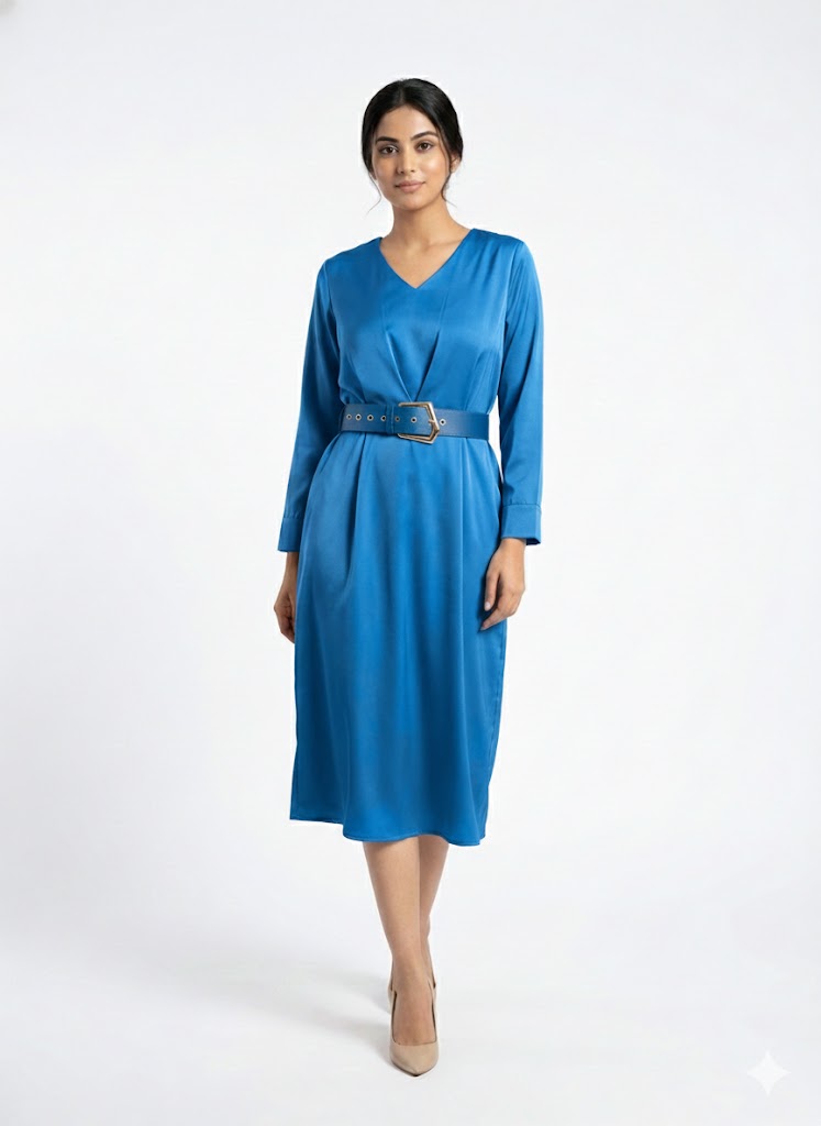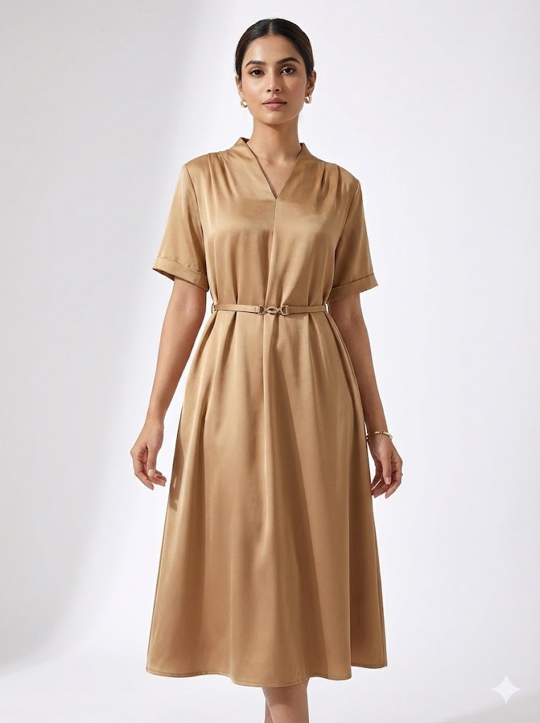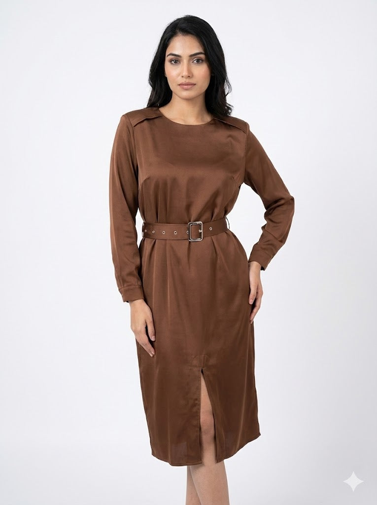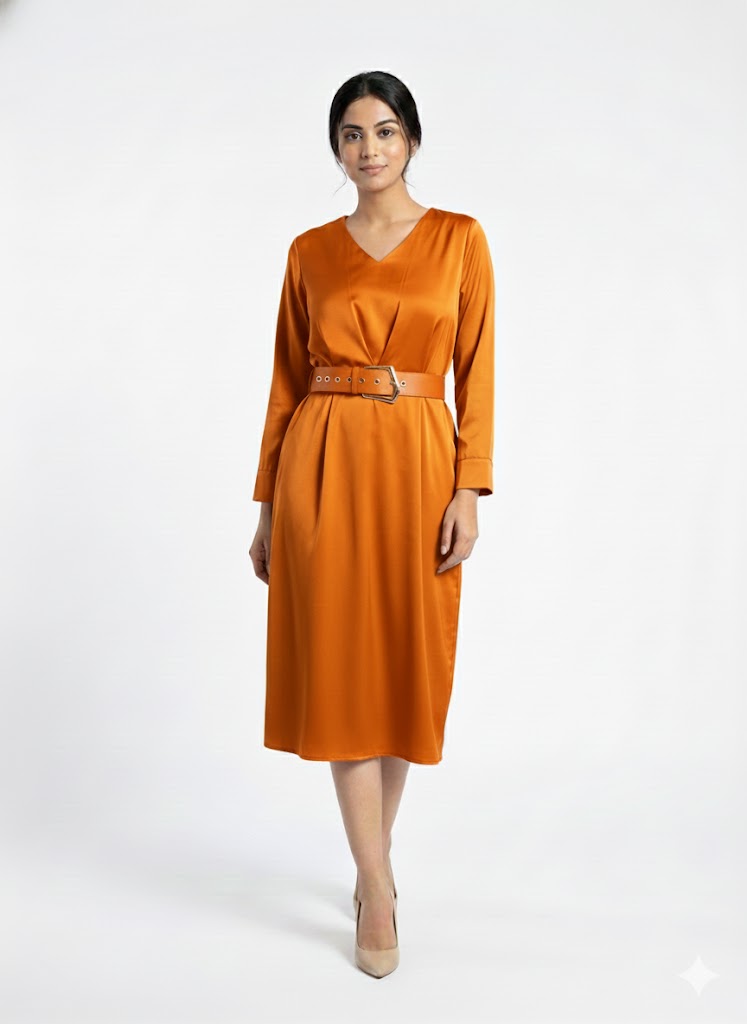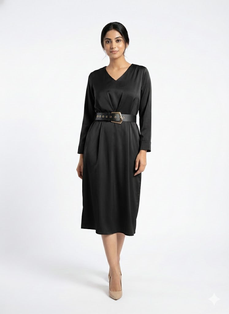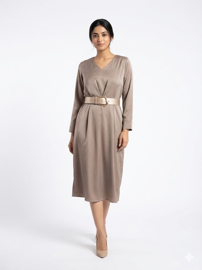 Elevate your wardrobe with this sophisticated satin belt dress, a versatile piece that seamlessly transitions from day to evening. The lustrous satin fabric drapes beautifully, creating...