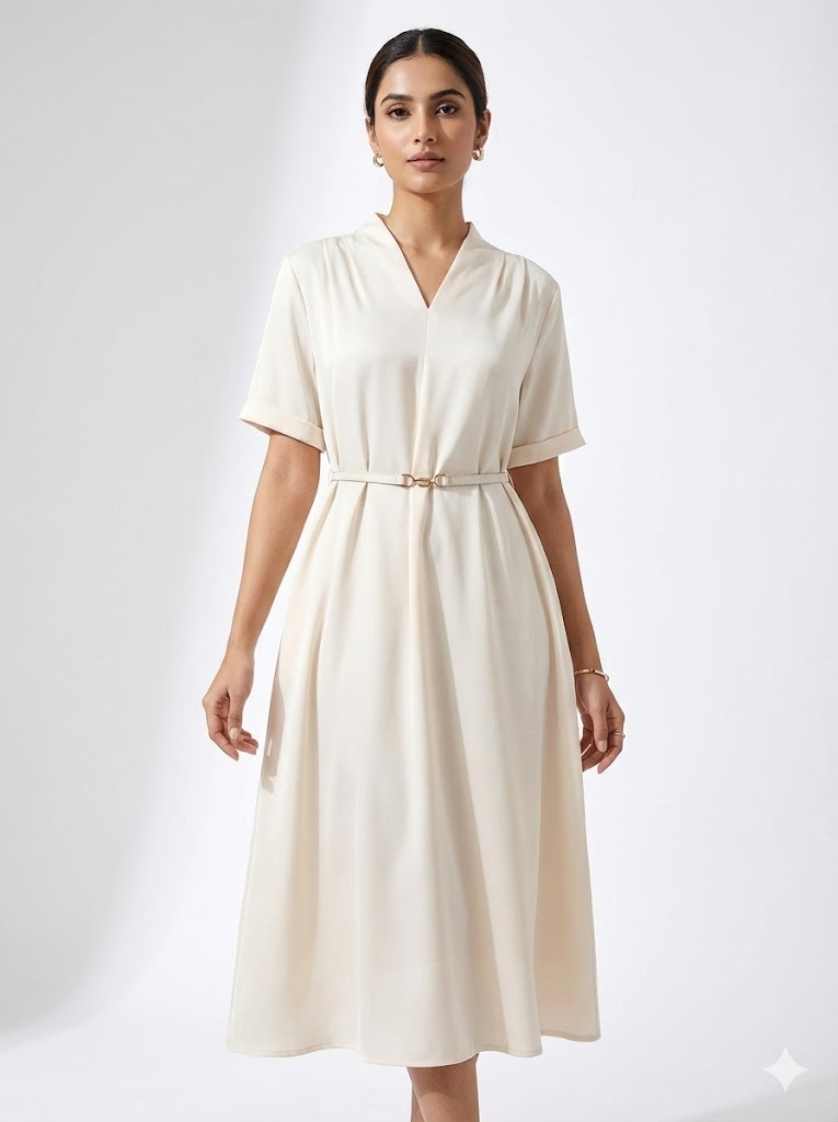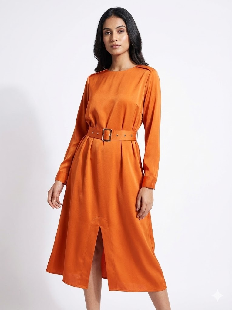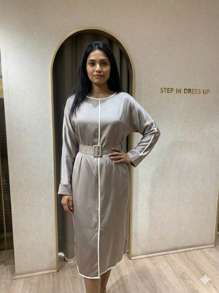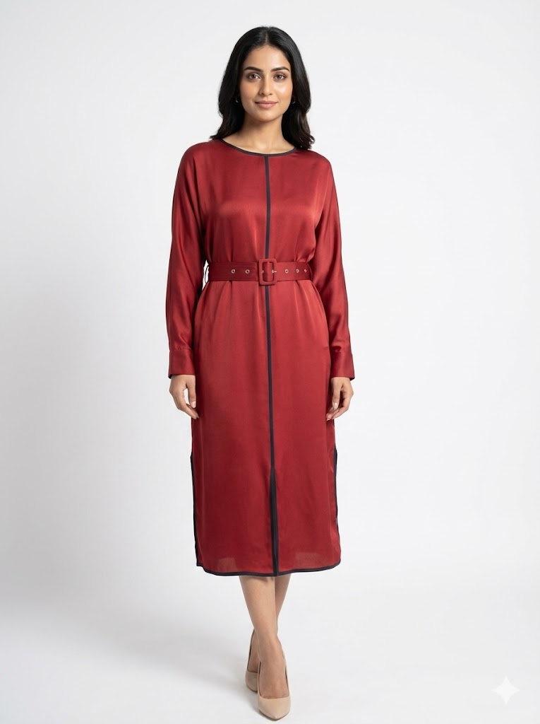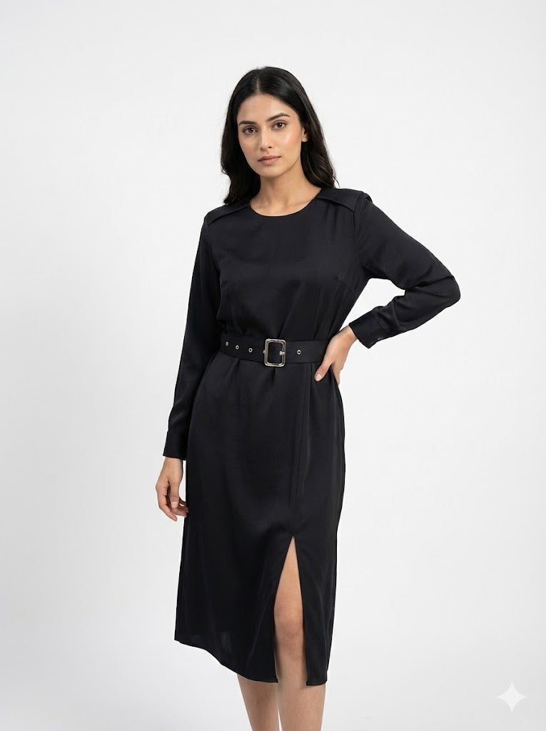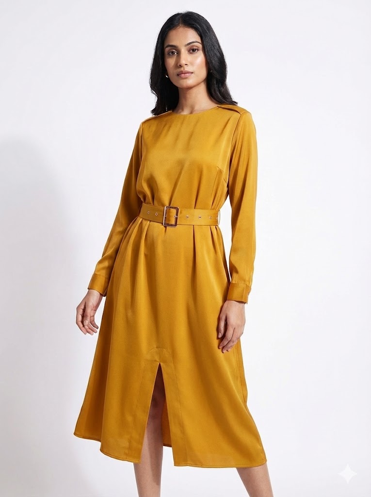 Elevate your wardrobe with this sophisticated satin belt dress, a versatile piece that seamlessly transitions from day to evening. The lustrous satin fabric drapes beautifully, creating...