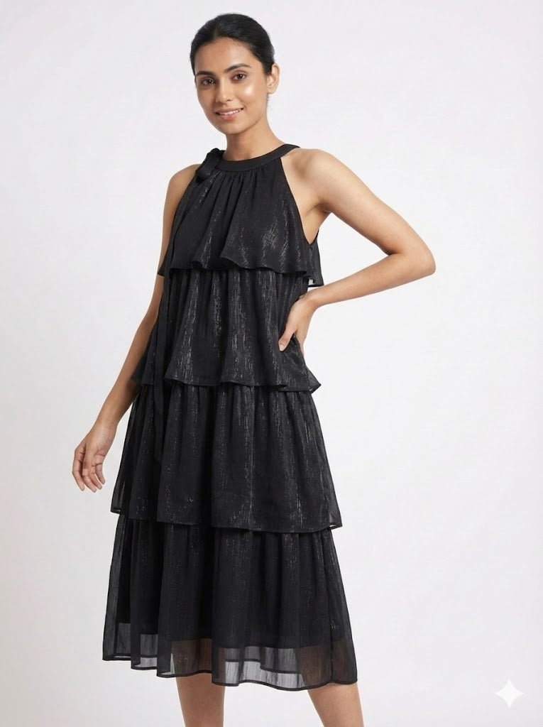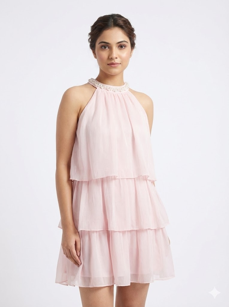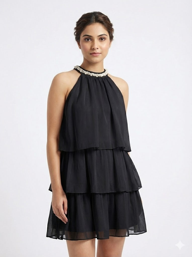 Elevate your wardrobe with this sophisticated Neck Pearl Flowy Dress, designed for those who appreciate refined elegance. The delicate pearl embellishment at the neckline adds a...