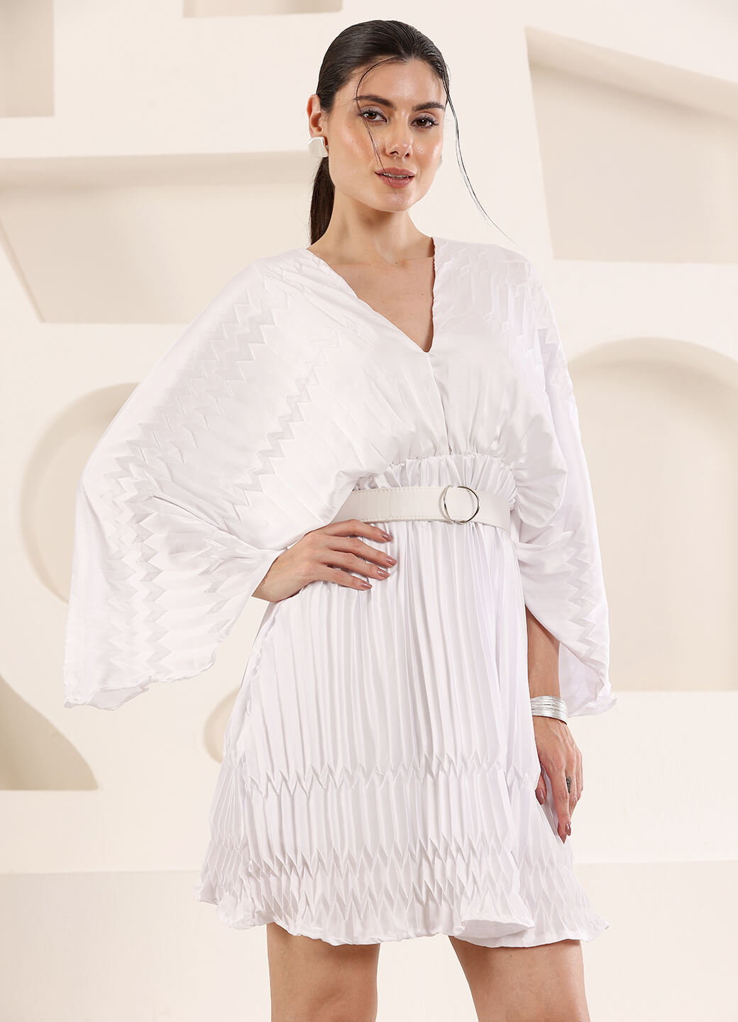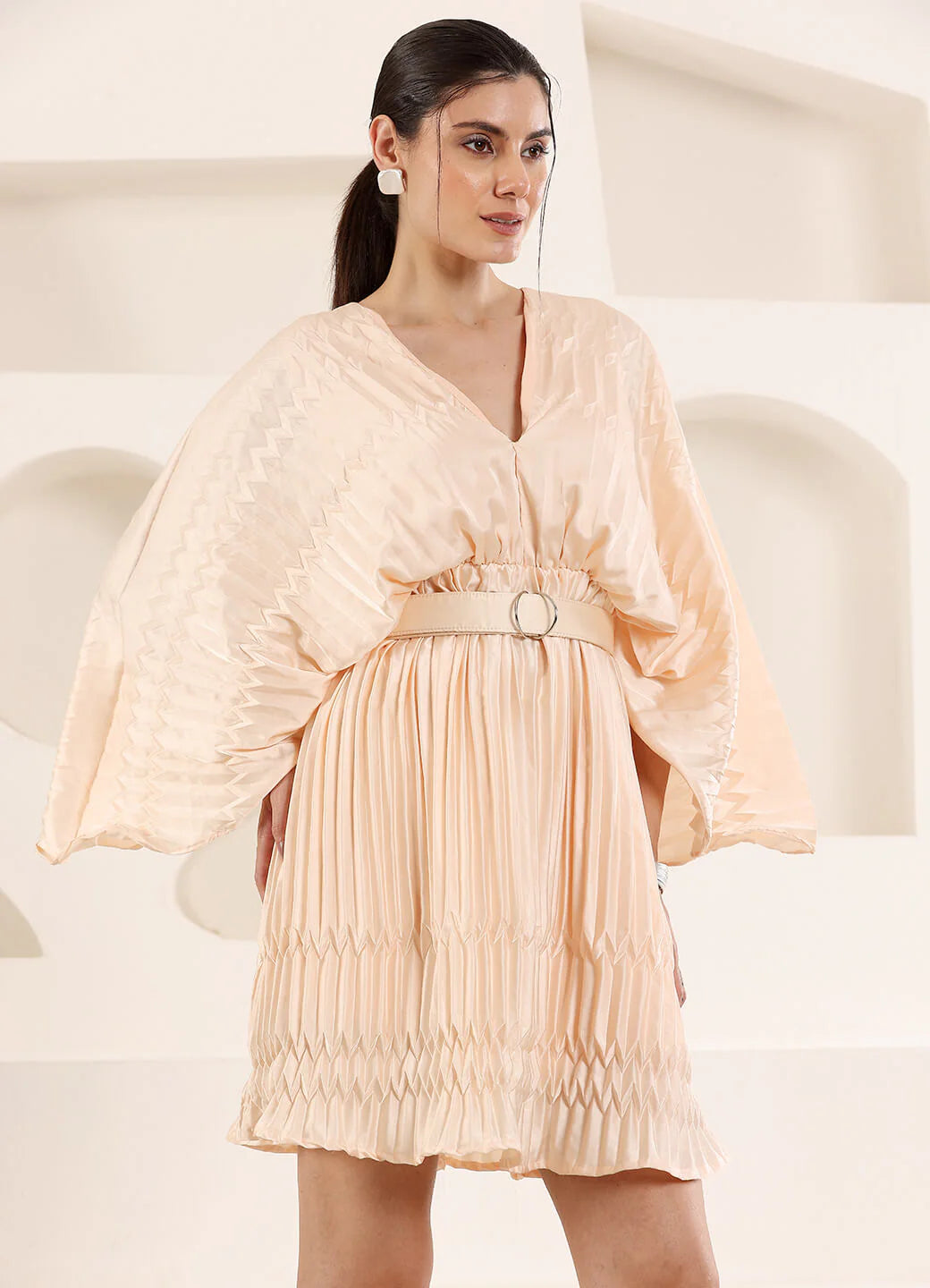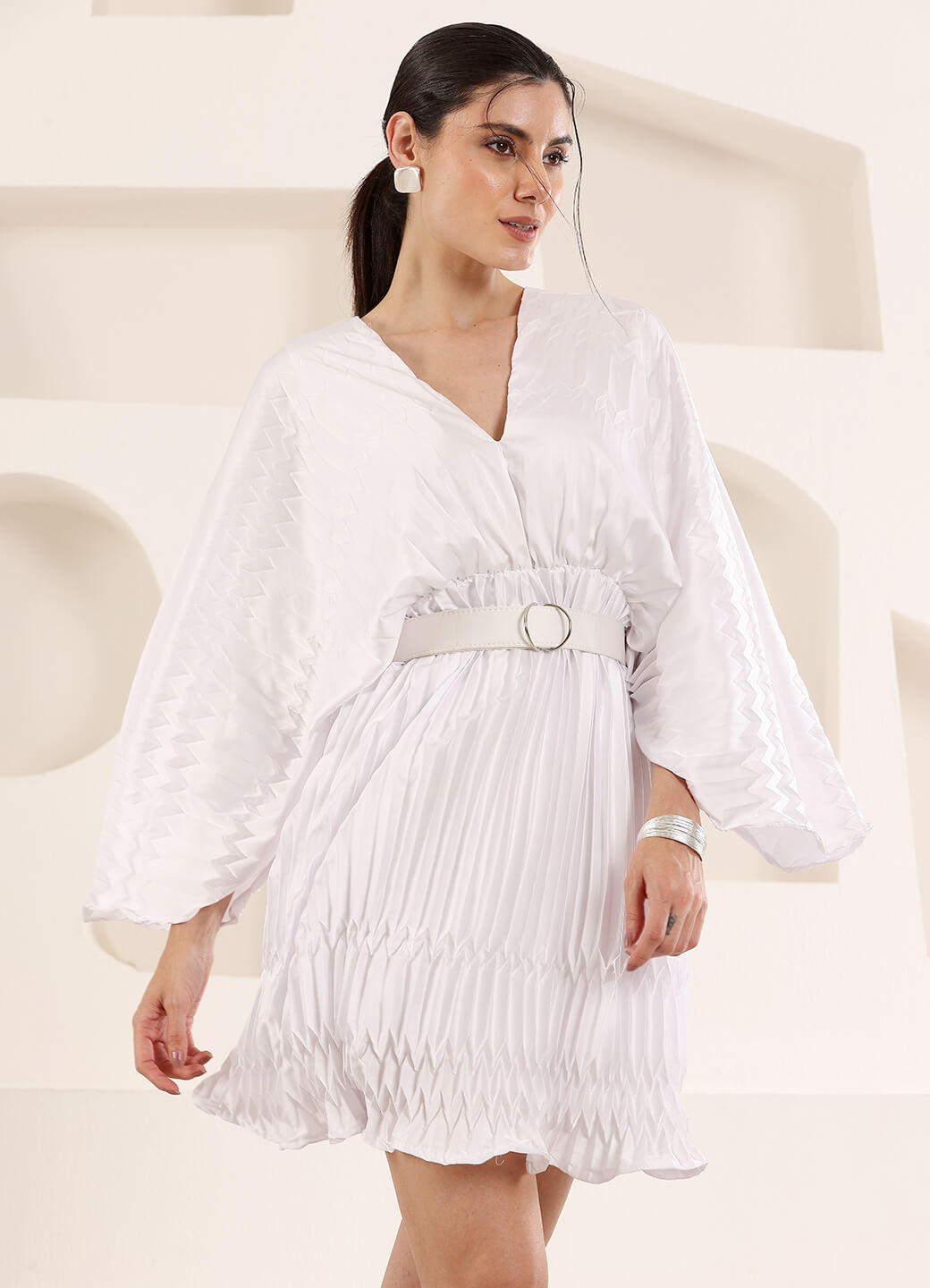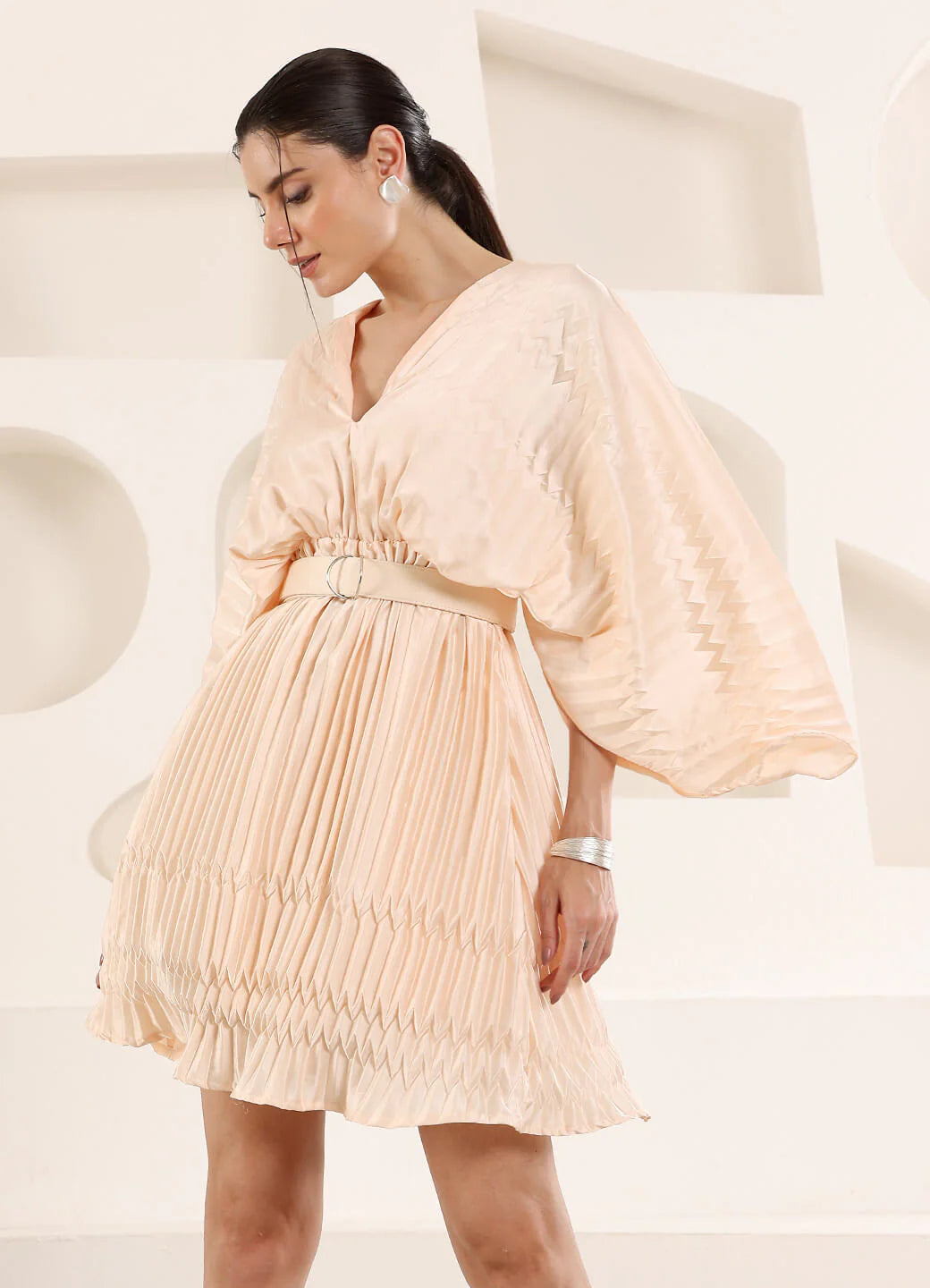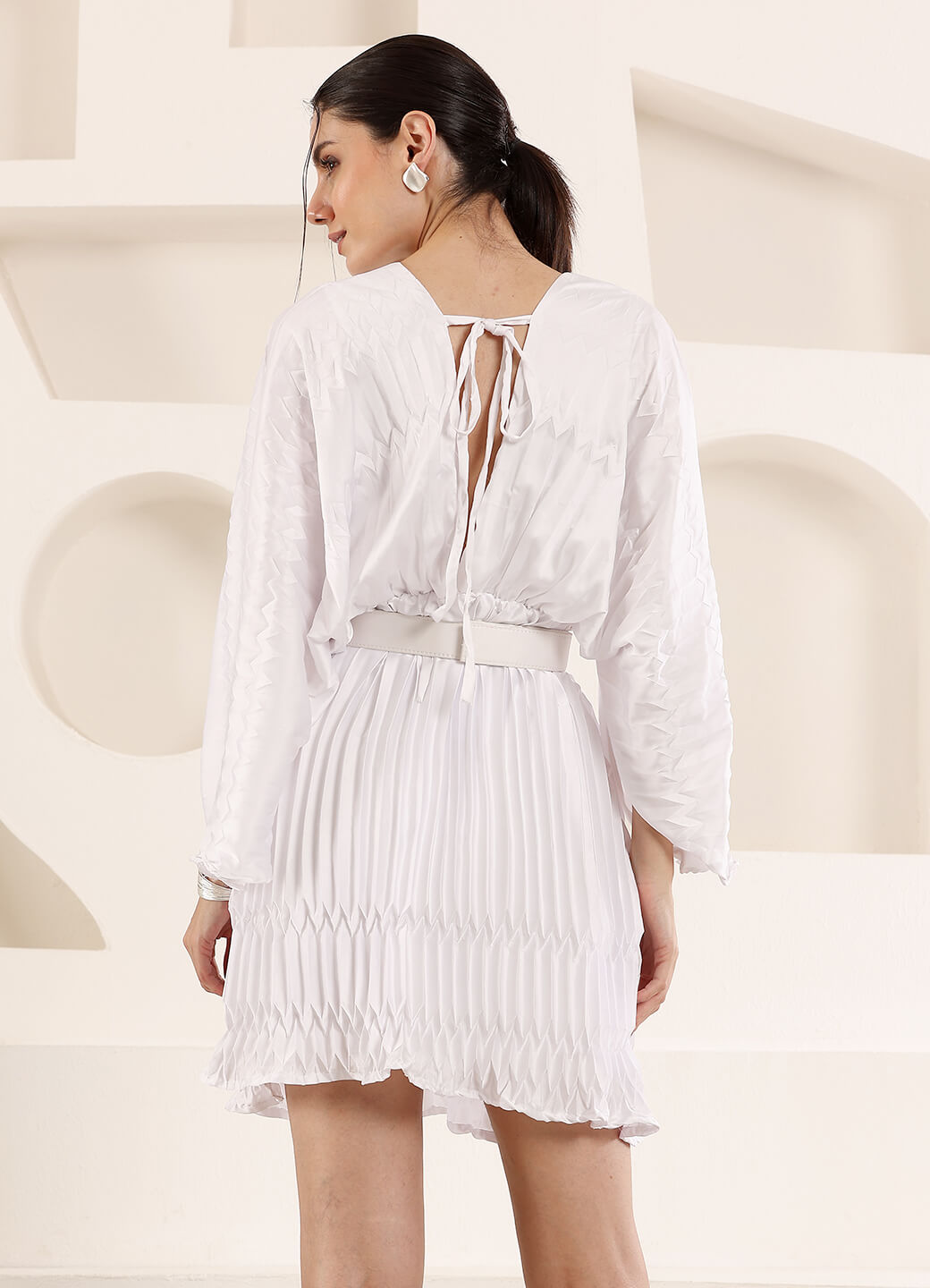 Pleated fabric mini dress