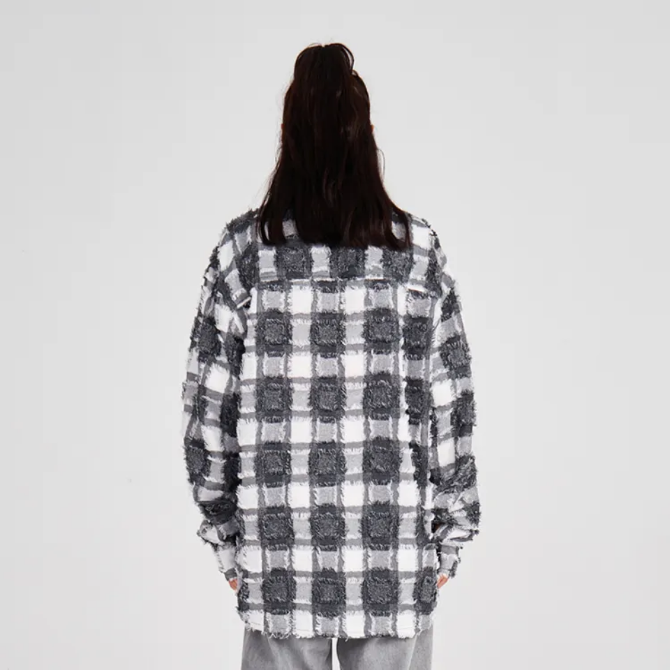 Monochrome grid textured shacket