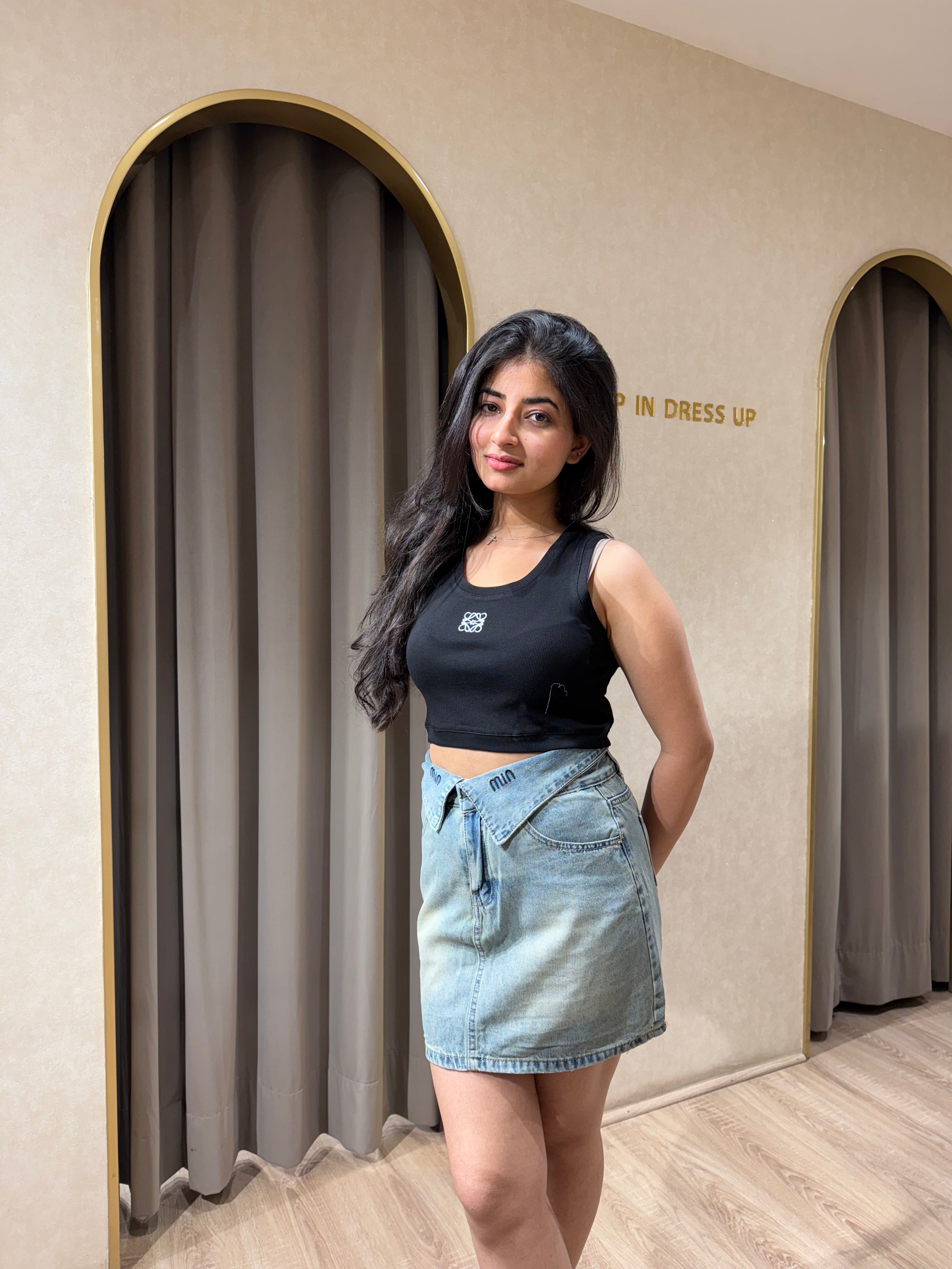 Rs. 1,599.00Rs. 1,599.00/Function meets fashion in this utility-style denim skirt with large flap pockets and subtle distressing. The A-line silhouette flatters, while the functional pockets offer an elevated...