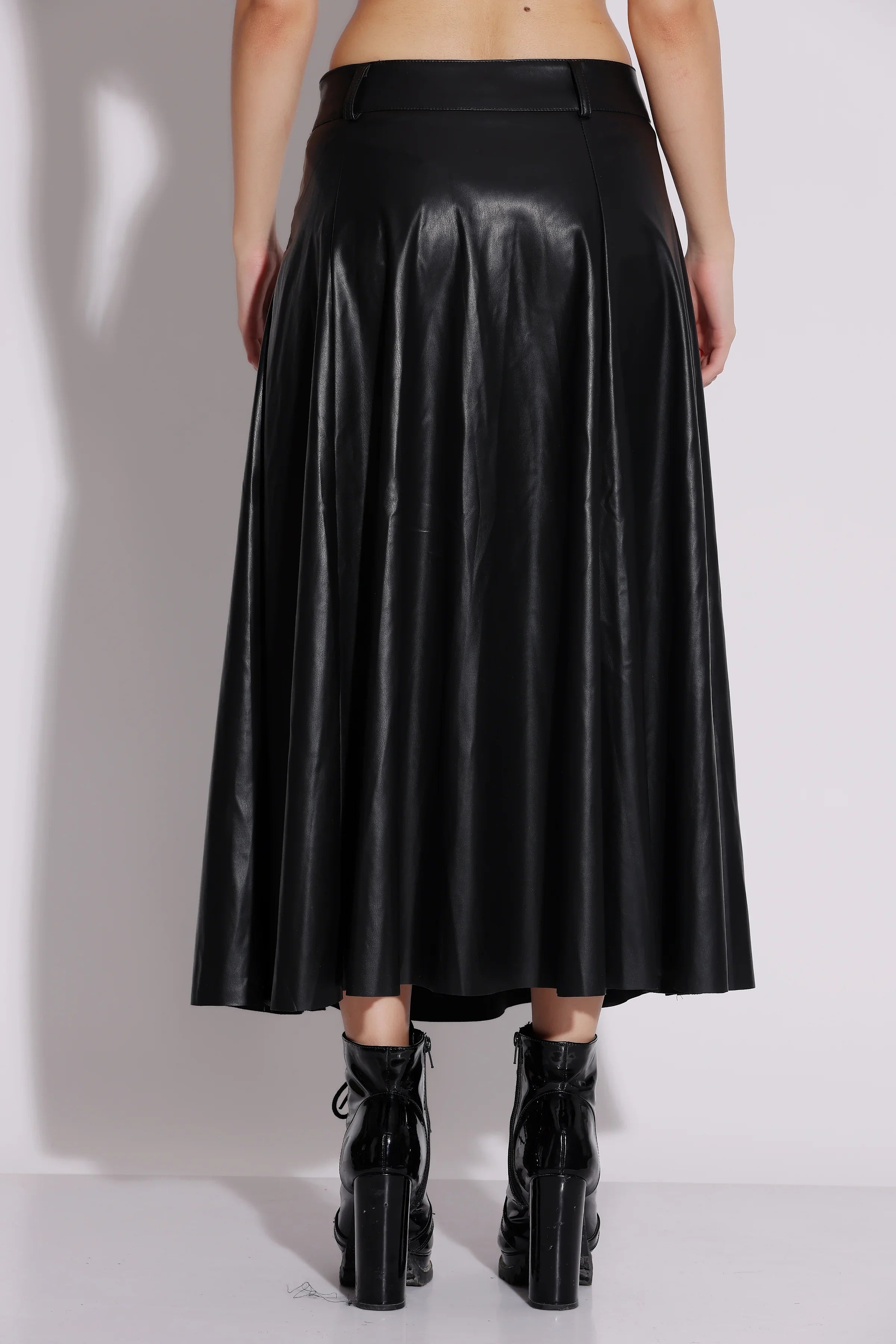 Rs. 2,299.00Rs. 2,299.00/The skirt has a flared, A-line silhouette that falls gracefully to the mid-calf. The waistband features a subtle zipper detail, adding a touch of edginess to...