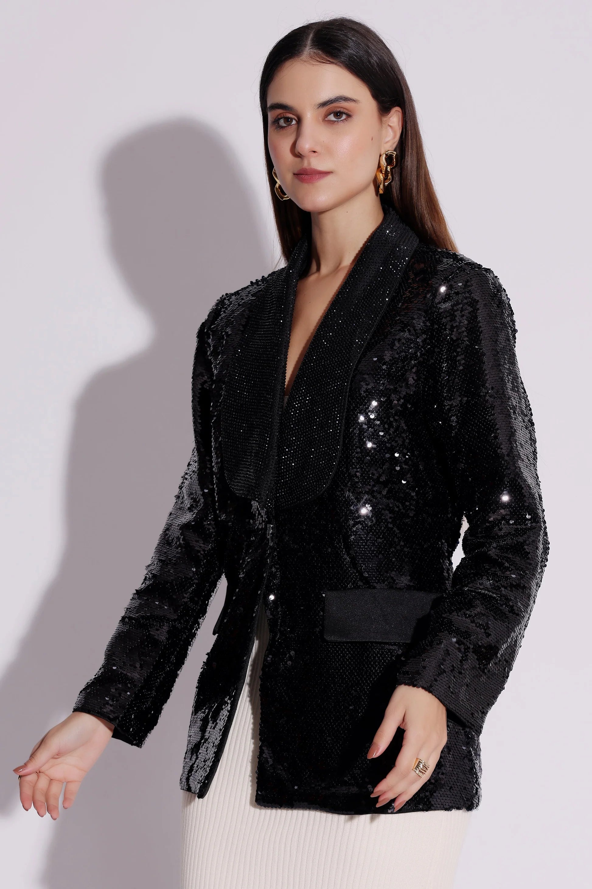 Rs. 4,999.00Rs. 4,999.00/This striking sequin blazer is the perfect statement piece to elevate any outfit. Crafted from a luxurious velvet fabric, the jacket features an all-over sequin embellishment...