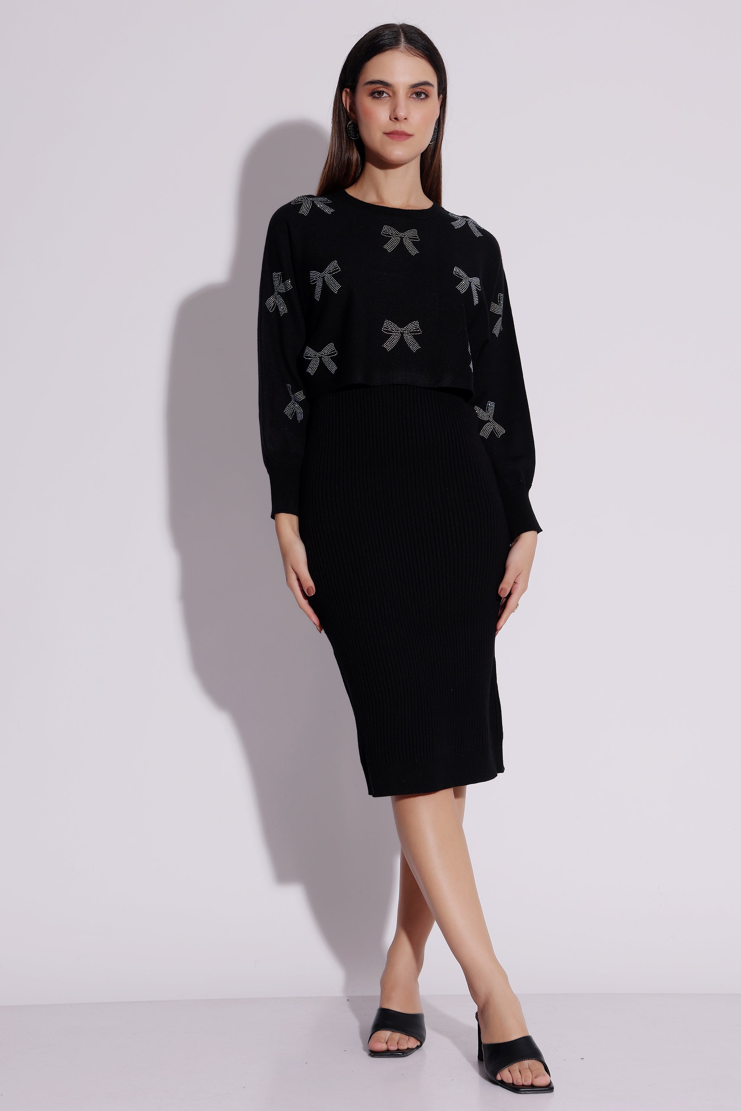 Rs. 2,499.00Rs. 2,499.00/This elegant sweater dress features a chic bow pattern throughout the body, adding a touch of whimsical style to your look. Crafted from a soft, high-quality...