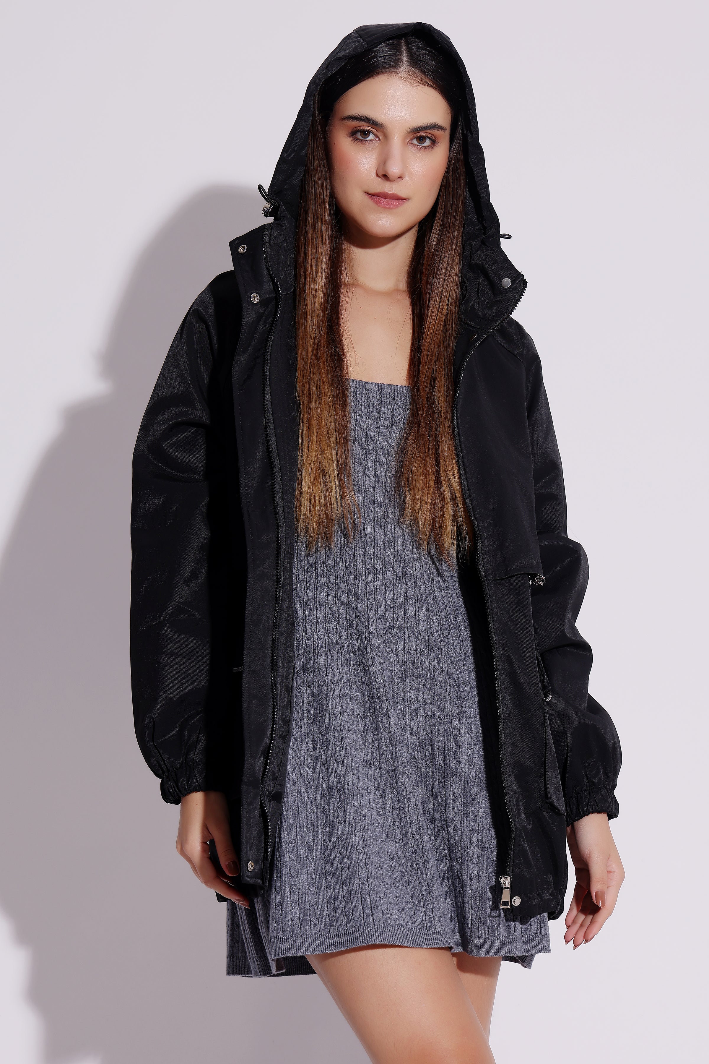 Rs. 3,999.00Rs. 3,999.00/This versatile black parka jacket features a drawstring hood, zippered pockets, and a cinched waist for a flattering, feminine silhouette. The lightweight, water-resistant fabric makes it...