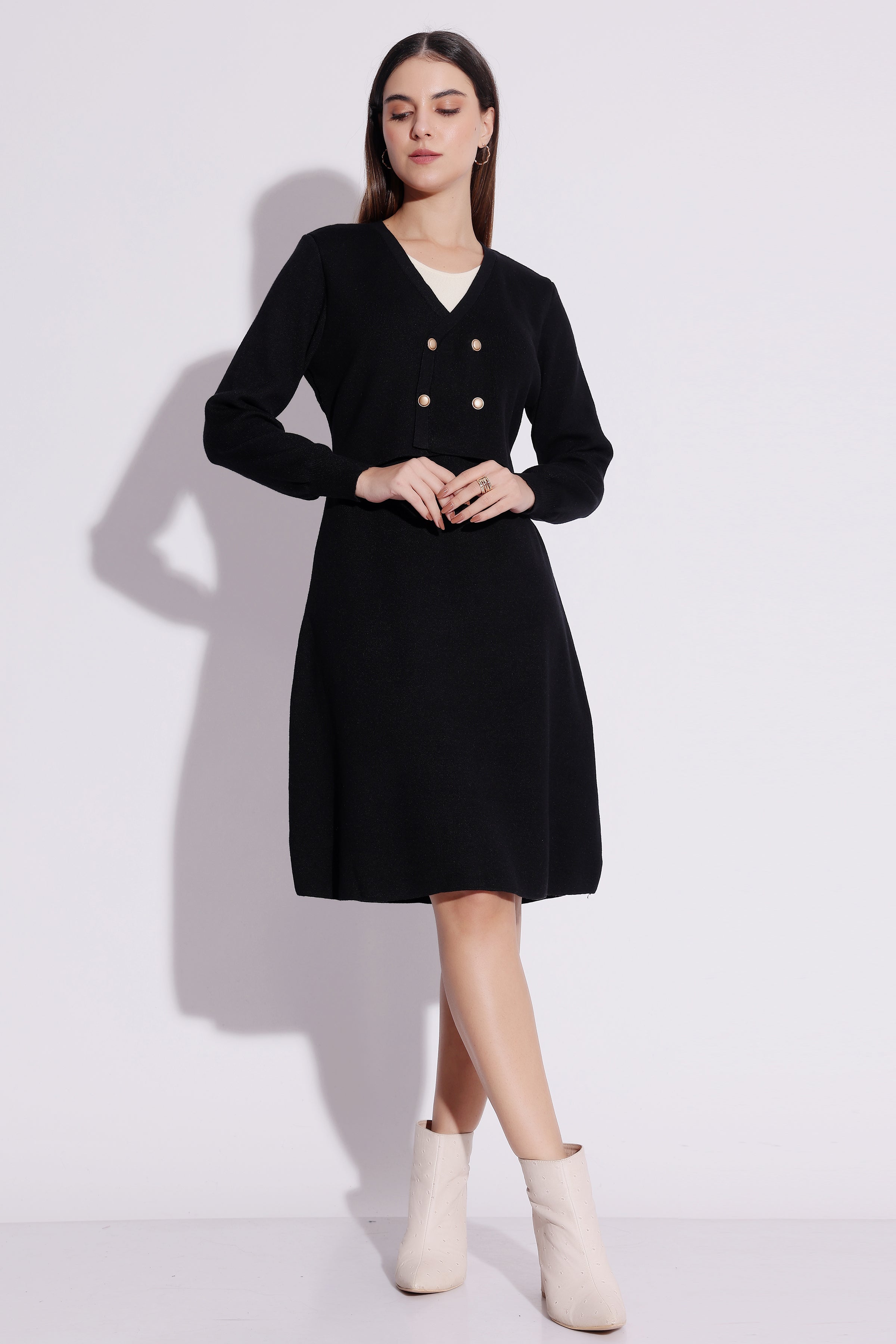 Rs. 2,499.00Rs. 2,499.00/This stylish and comfortable knit dress features a v-neck design with button detailing. The long sleeves and textured knit fabric create a chic and cozy look....