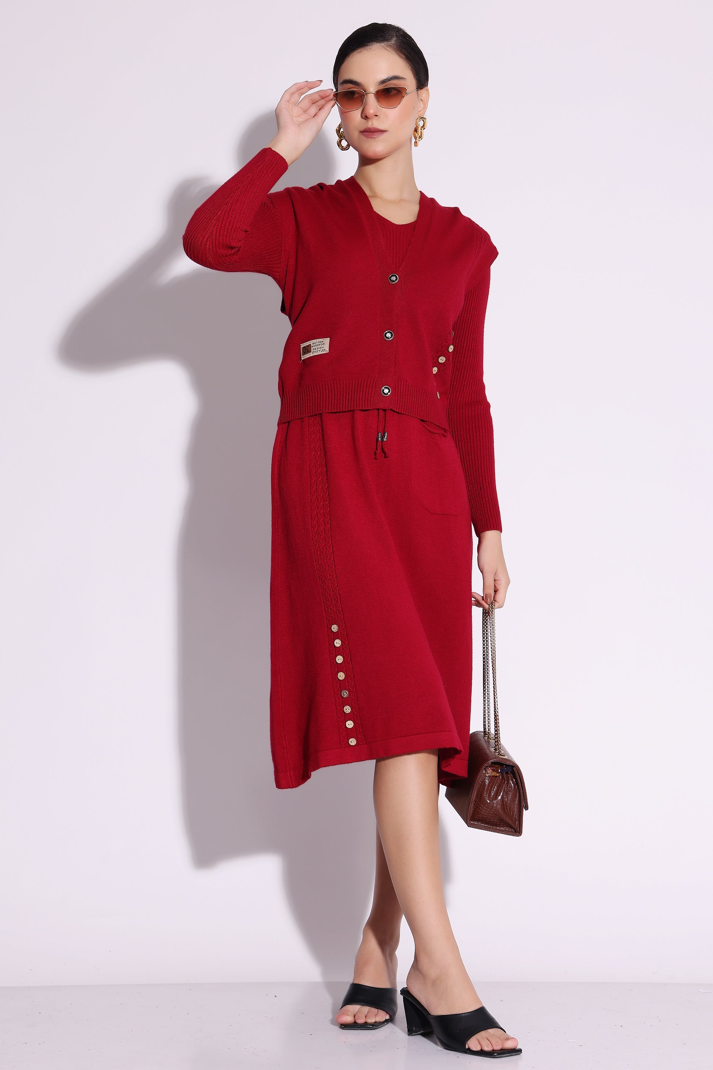 Rs. 3,299.00Rs. 3,299.00/This striking crimson knit dress exudes sophistication and style. Crafted from a high-quality, soft knit fabric, the dress features a flattering A-line silhouette that accentuates the...