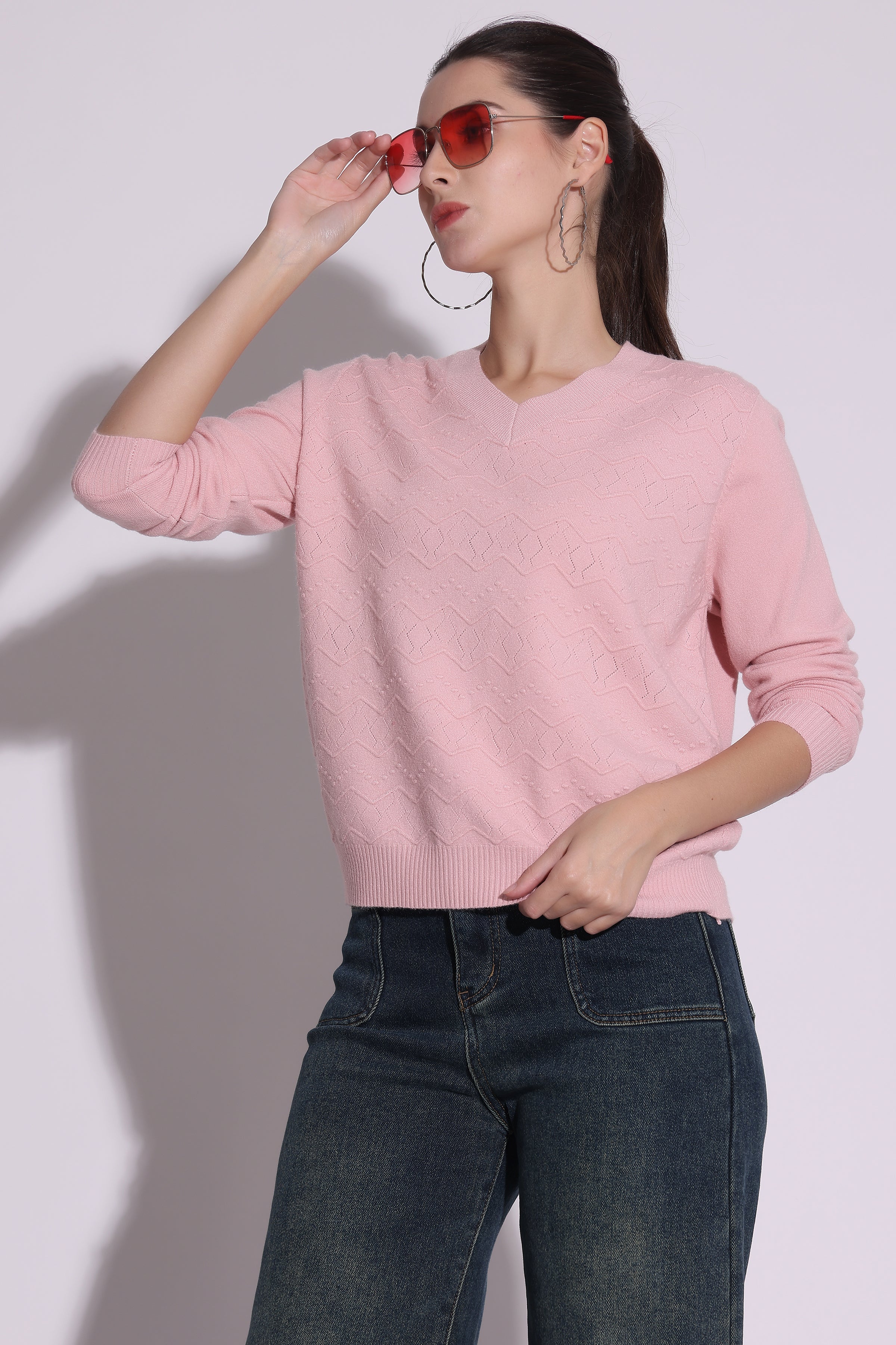 Rs. 2,299.00Rs. 2,299.00/Stay cozy and chic this winter with our soft pink V-neck knit sweater. Featuring a subtle textured pattern, this sweater offers both comfort and elegance. Perfect...