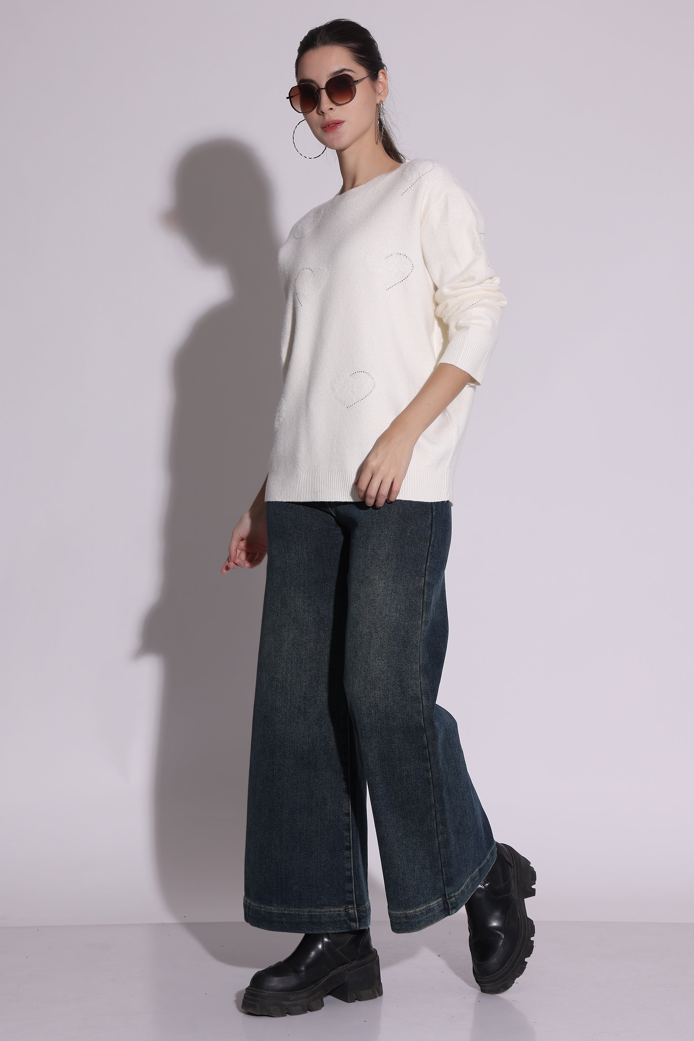 Heart embroidered oversized sweater