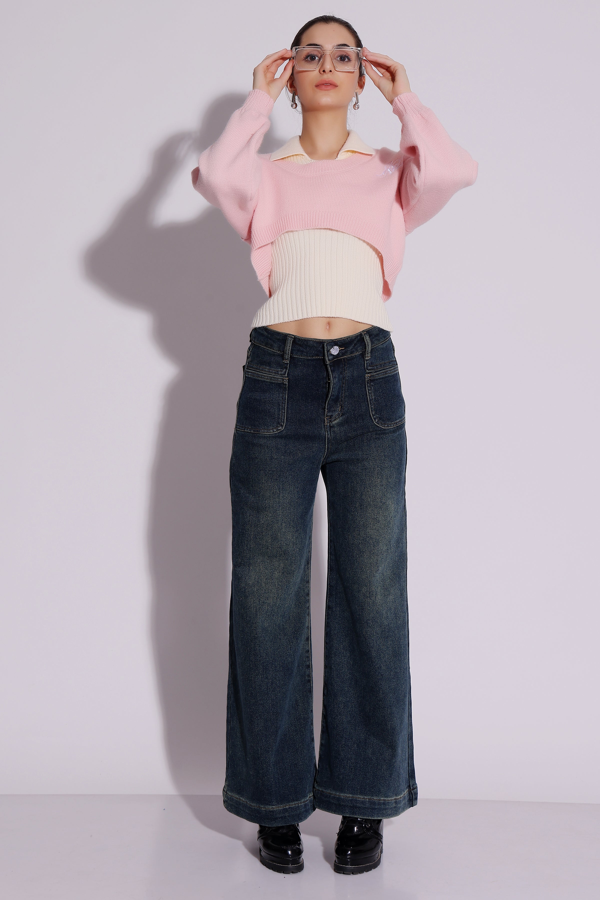 Rs. 1,999.00Rs. 1,999.00/Embrace the chic layered look with this two-tone cropped sweater set. The soft pink and cream combination adds a playful yet elegant touch to your winter...