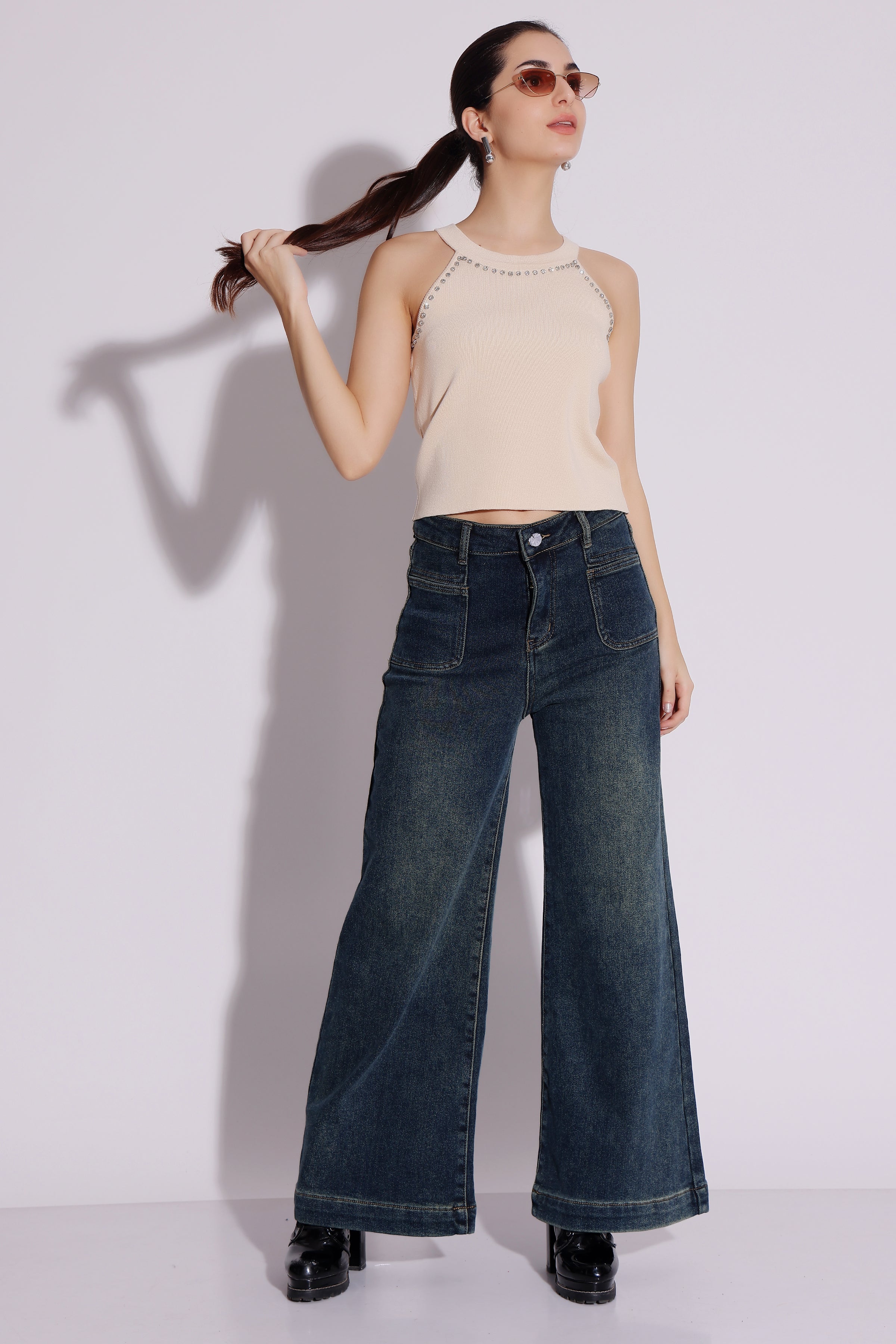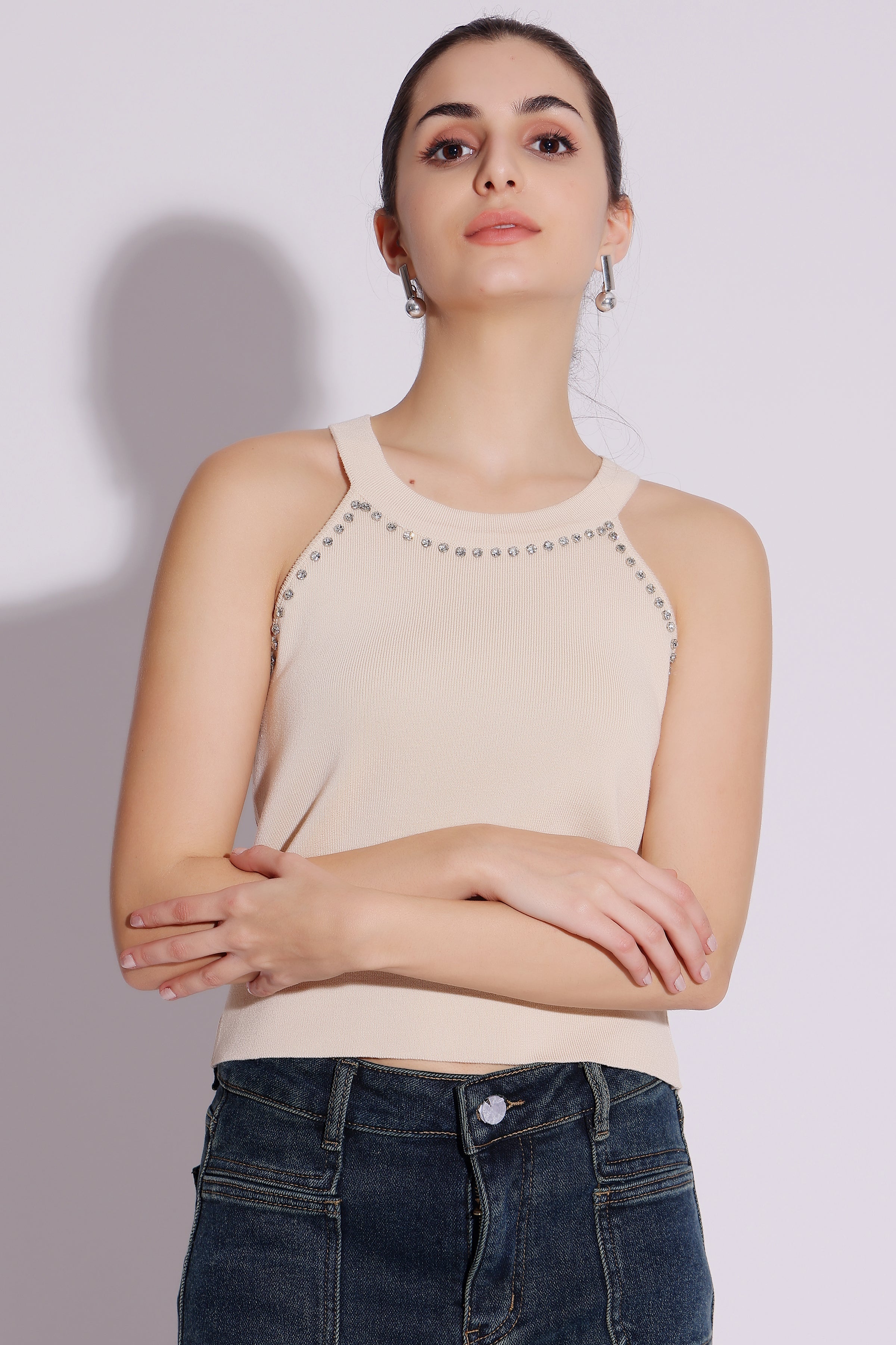 Rs. 1,599.00Rs. 1,599.00/Stay effortlessly stylish with this Beige Knit Halter Top. Featuring a flattering halter neckline with subtle stud embellishments, this versatile piece is perfect for layering or...