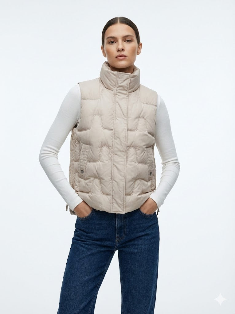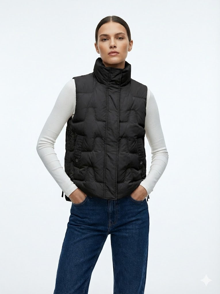 Elevate your layering game with this sleeveless puffed jacket, engineered for versatile warmth without bulk. The quilted construction traps heat efficiently while maintaining a streamlined silhouette...