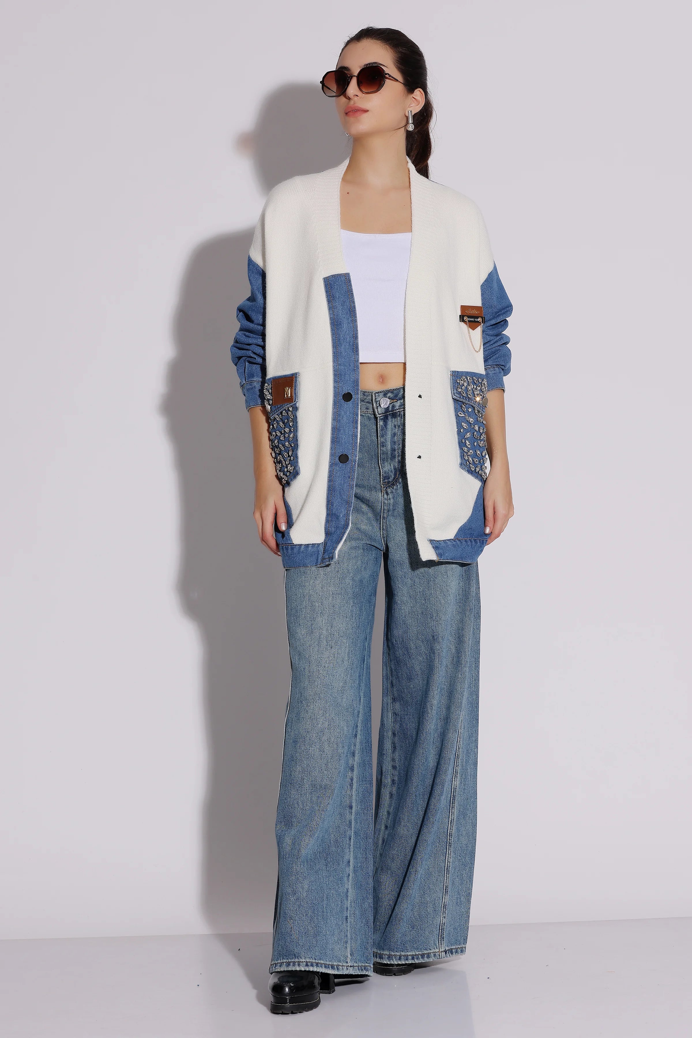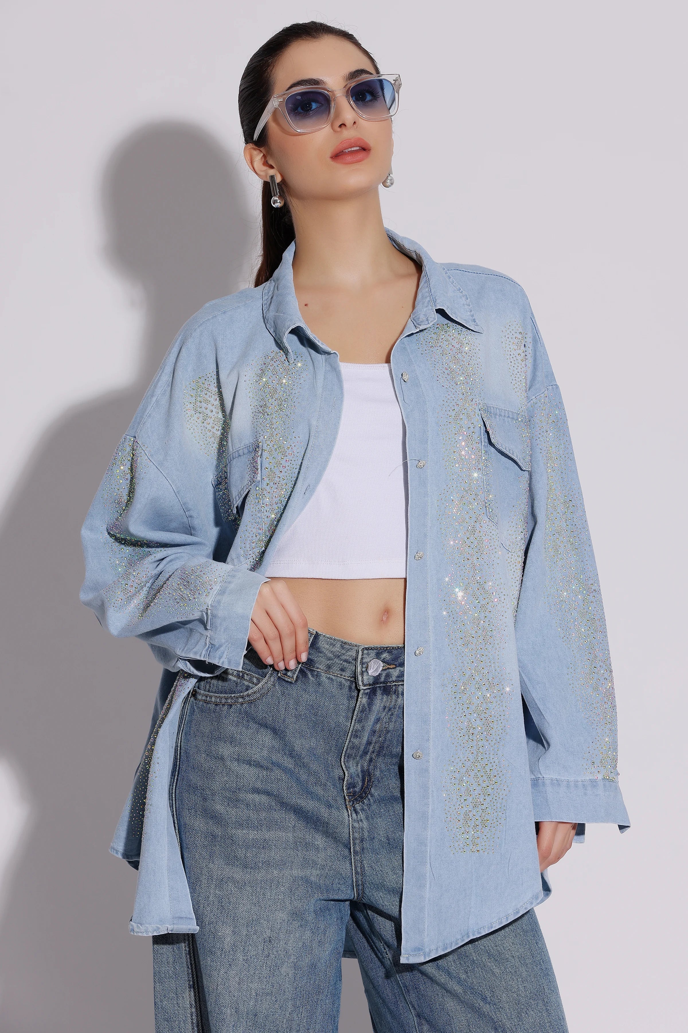 Sparkling denim oversized shirt