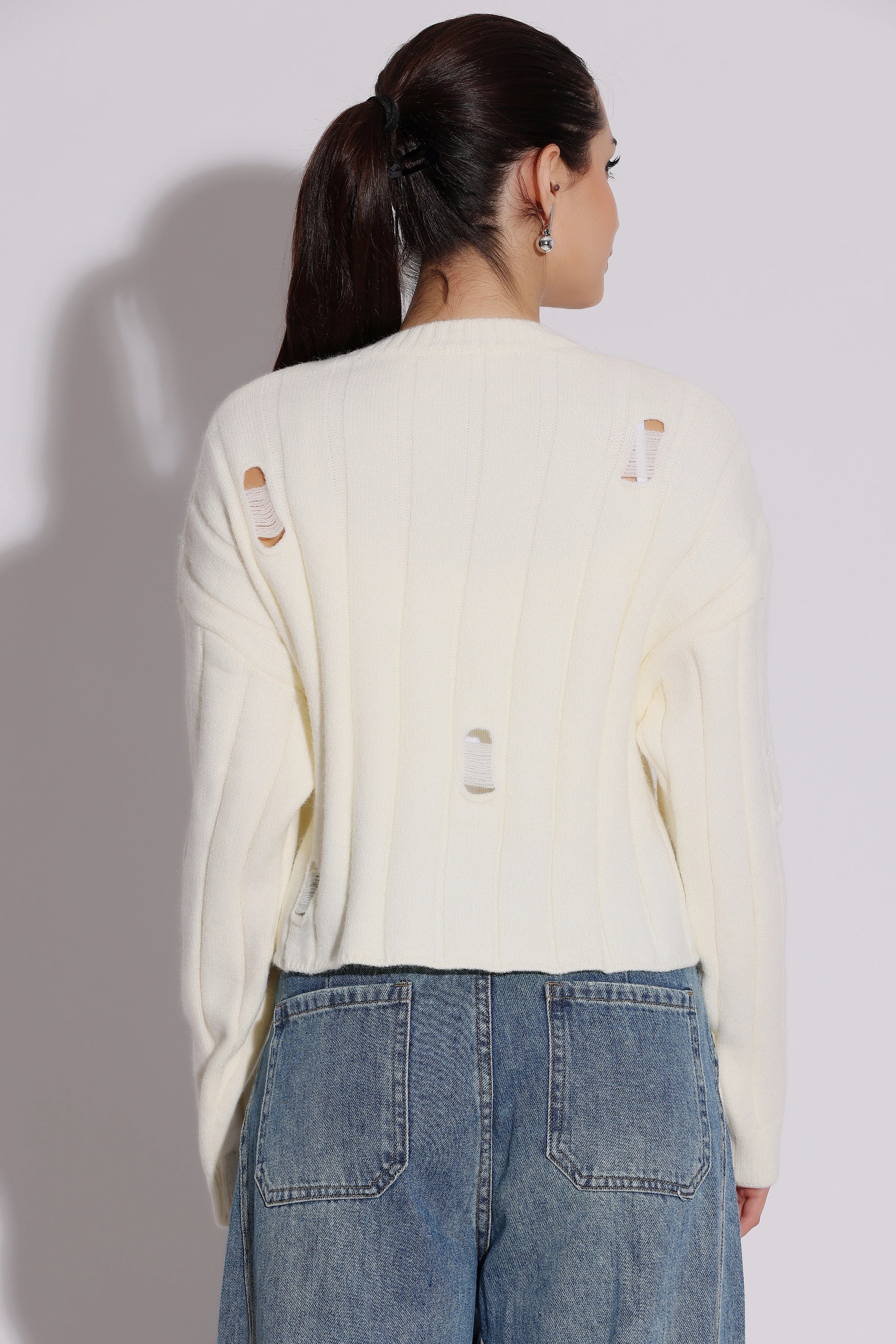 Studs embellished distressed knit sweater
