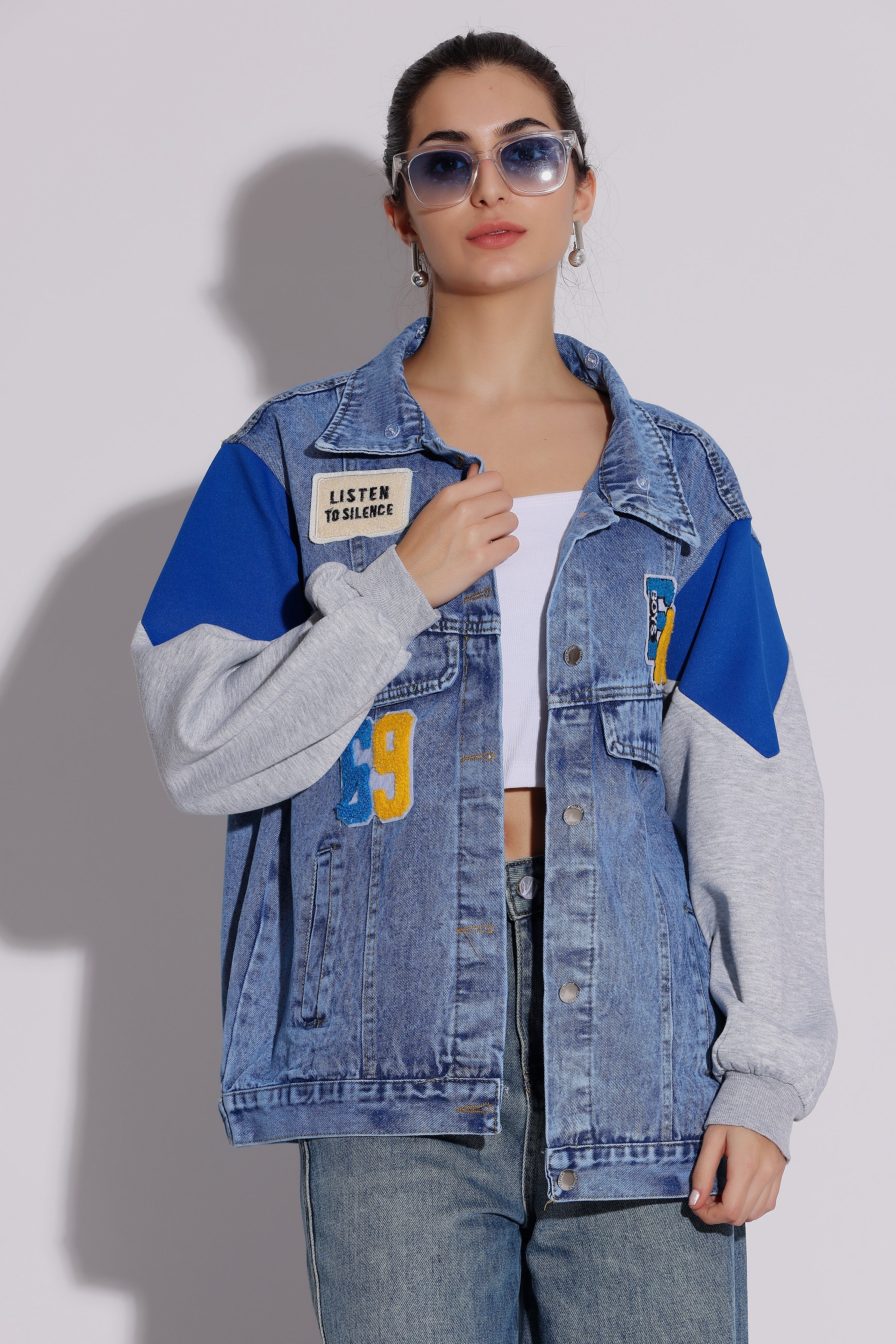 Rs. 2,499.00Rs. 2,499.00/This statement-making denim jacket combines bold graphics, mixed denim washes, and an oversized silhouette for a truly unique look. The jacket features a large "C9" patch...