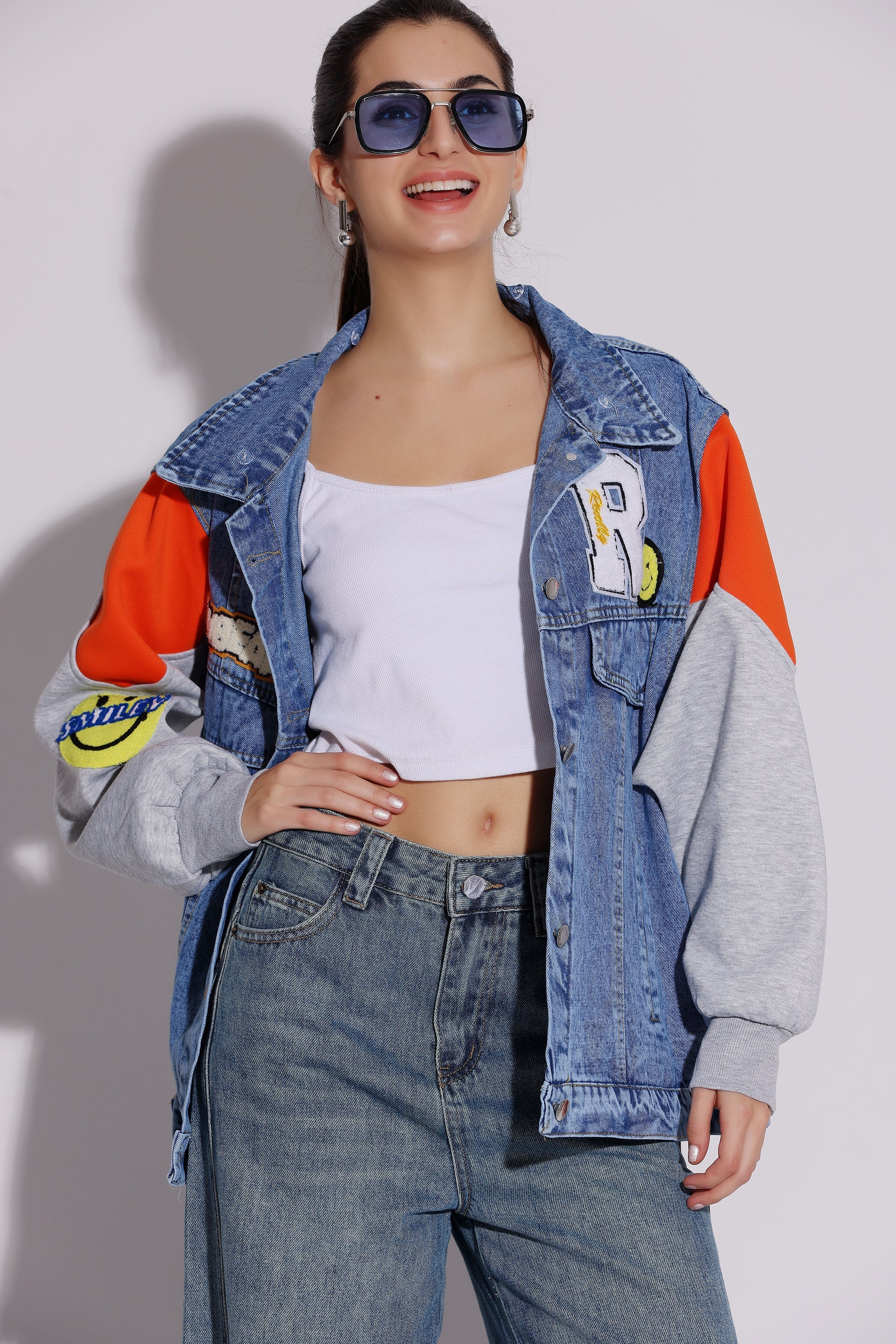 Rs. 2,499.00Rs. 2,499.00/This statement-making denim jacket combines bold graphics, mixed denim washes, and an oversized silhouette for a truly unique look. The jacket features a large "R" patch...
