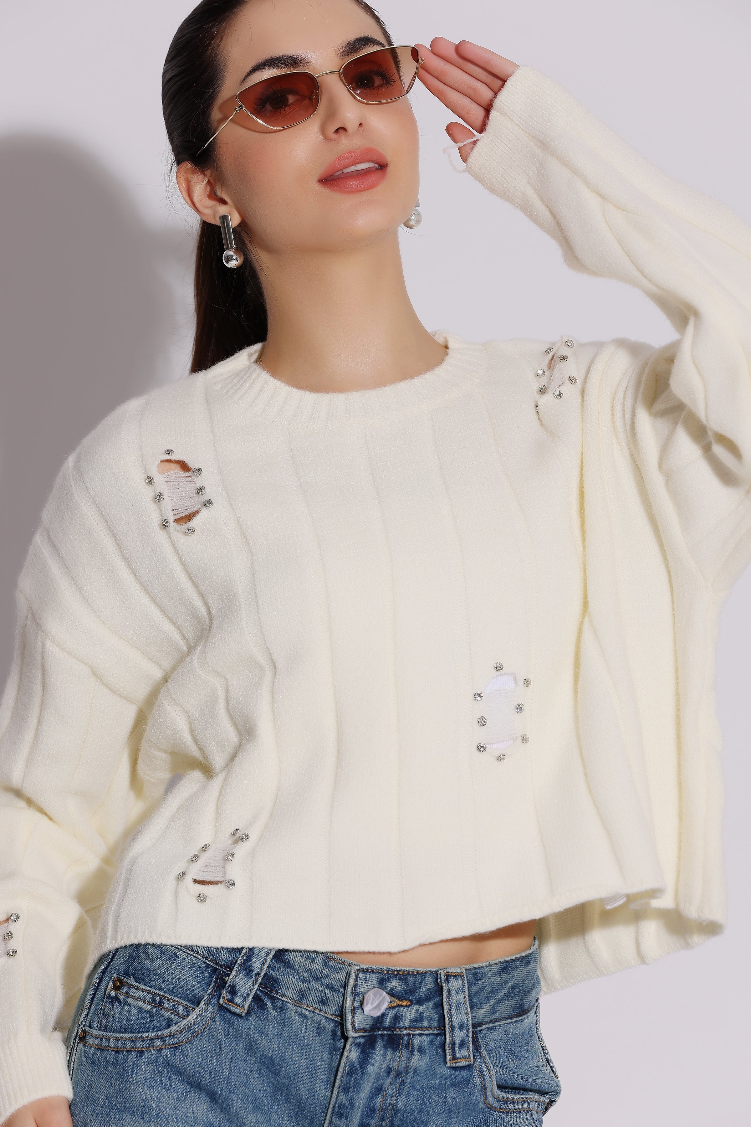 Embellished knit sweater