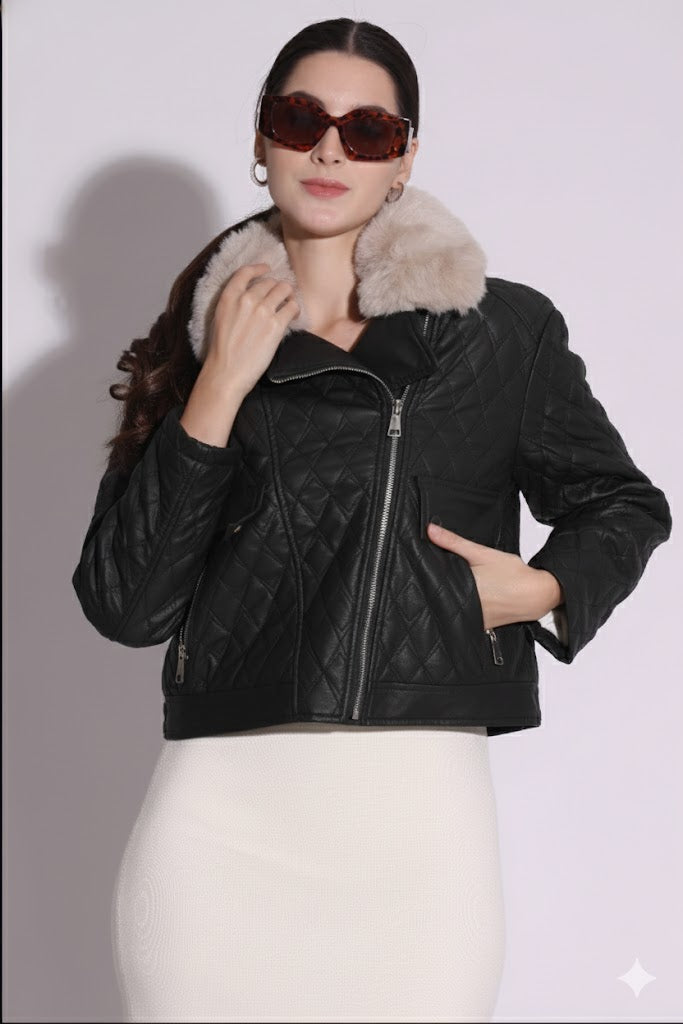 Elevate your winter style with this chic quilted faux-leather jacket. Featuring a rich brown tone, a luxurious faux-fur collar, and detailed stitching, it’s both sophisticated and...