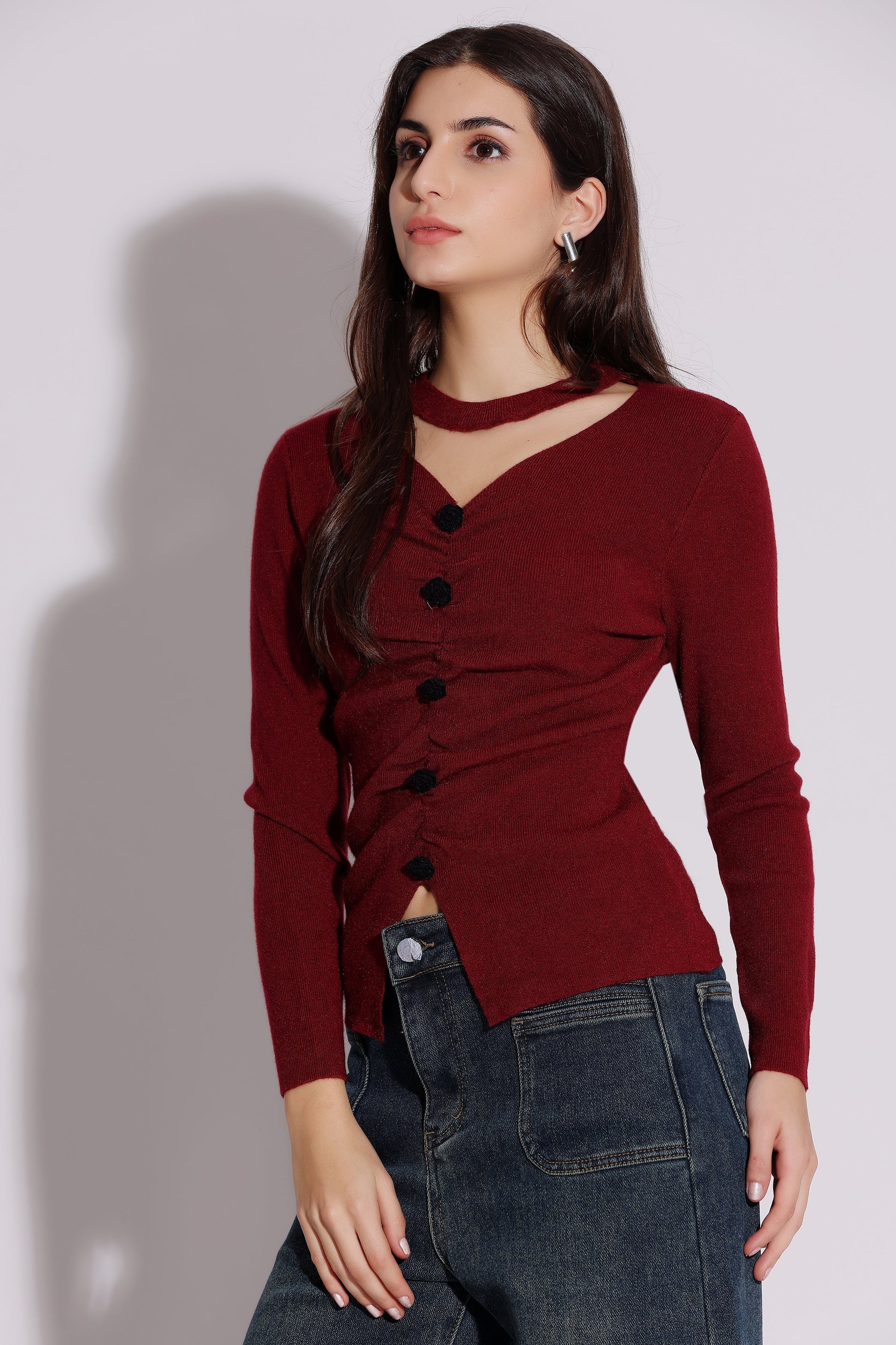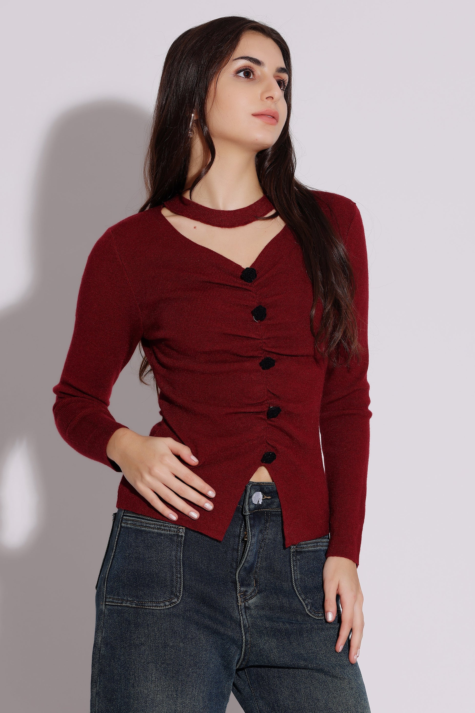 Burgundy Button-Front Sweater