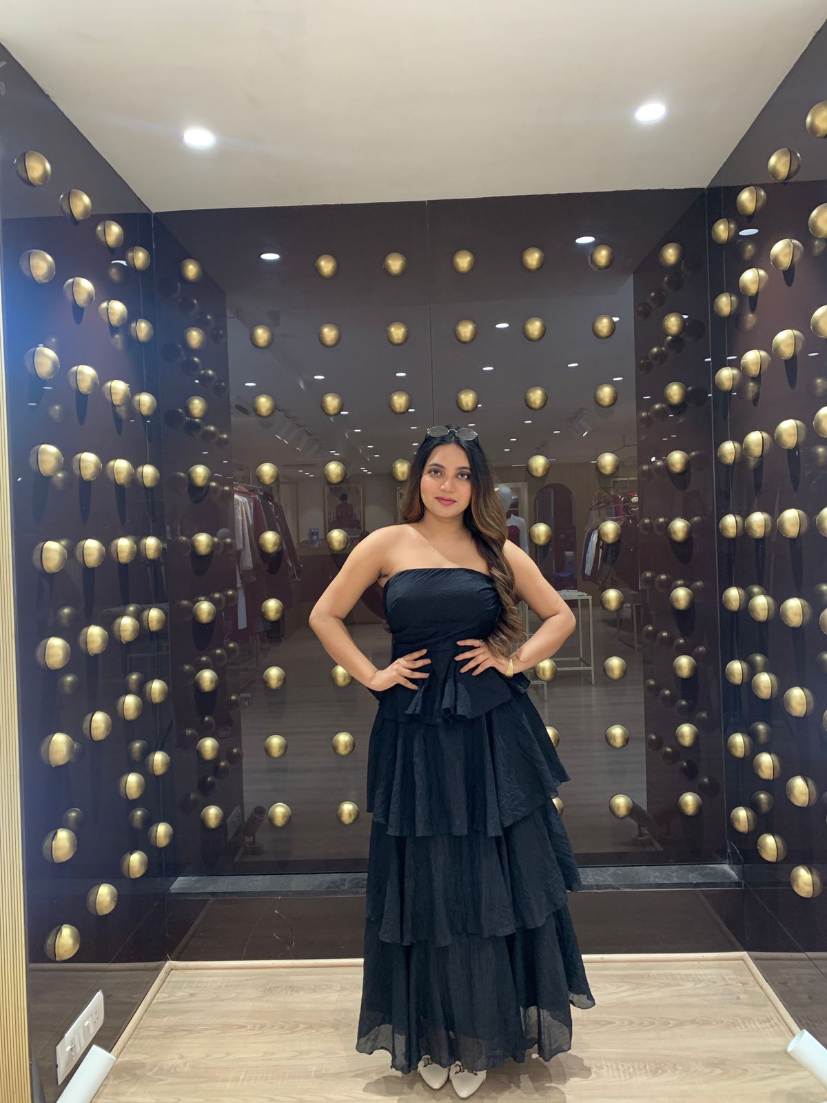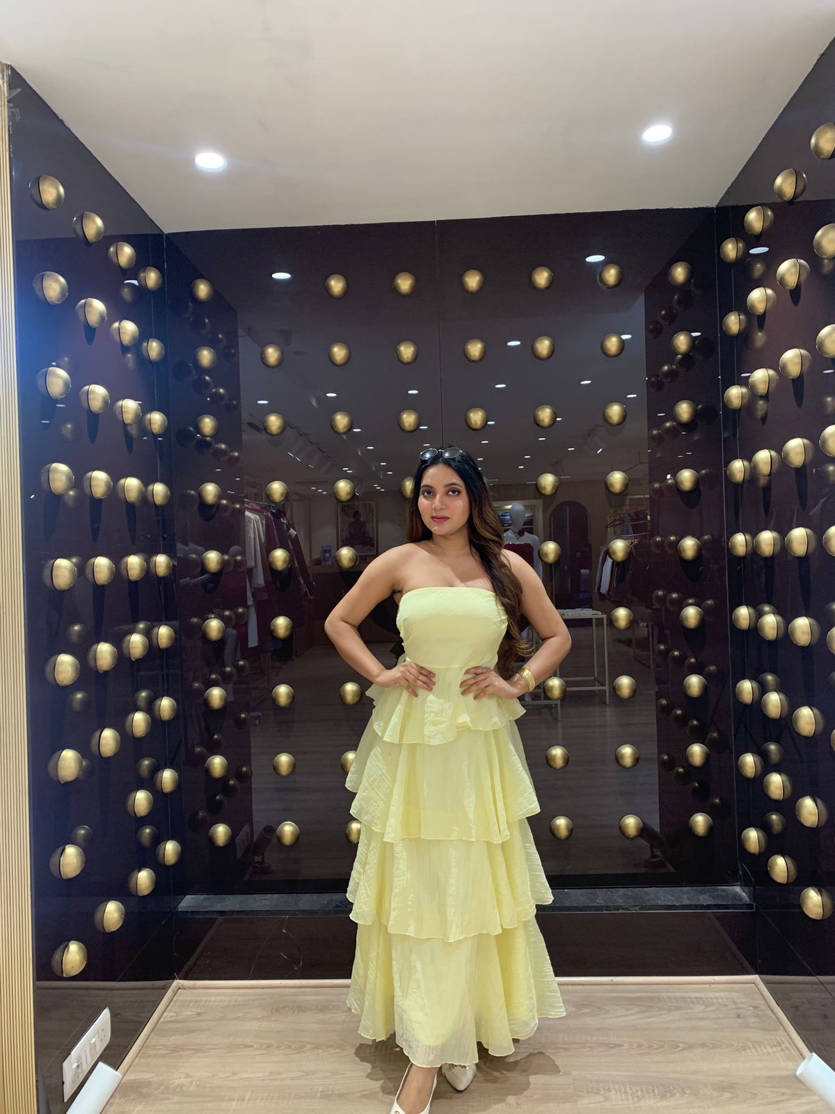 This strapless cake dress features a layered, voluminous design that adds a playful yet elegant silhouette. Crafted to highlight the shoulders and neckline, it offers a flattering fit without straps, perfect for formal occasions or celebrations. The dress combines style and comfort, allowing freedom of movement while making a bold fashion statement. Ideal for those seeking a unique and sophisticated look.